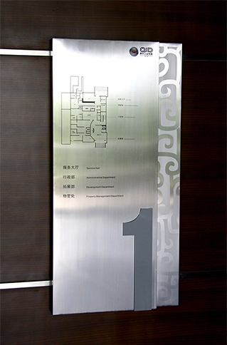 導(dǎo)視門牌制作中常用到的材質(zhì)有,拉絲不銹鋼板、鋁板、亞克力板、led/熒光燈光源、鋼化玻璃、石材、木材等。